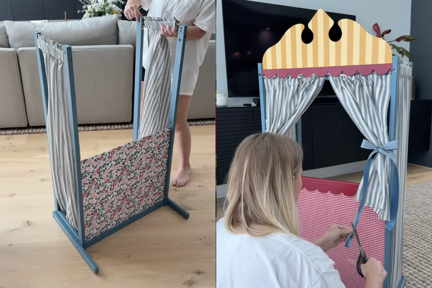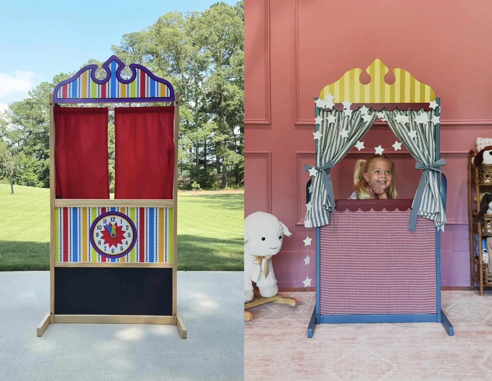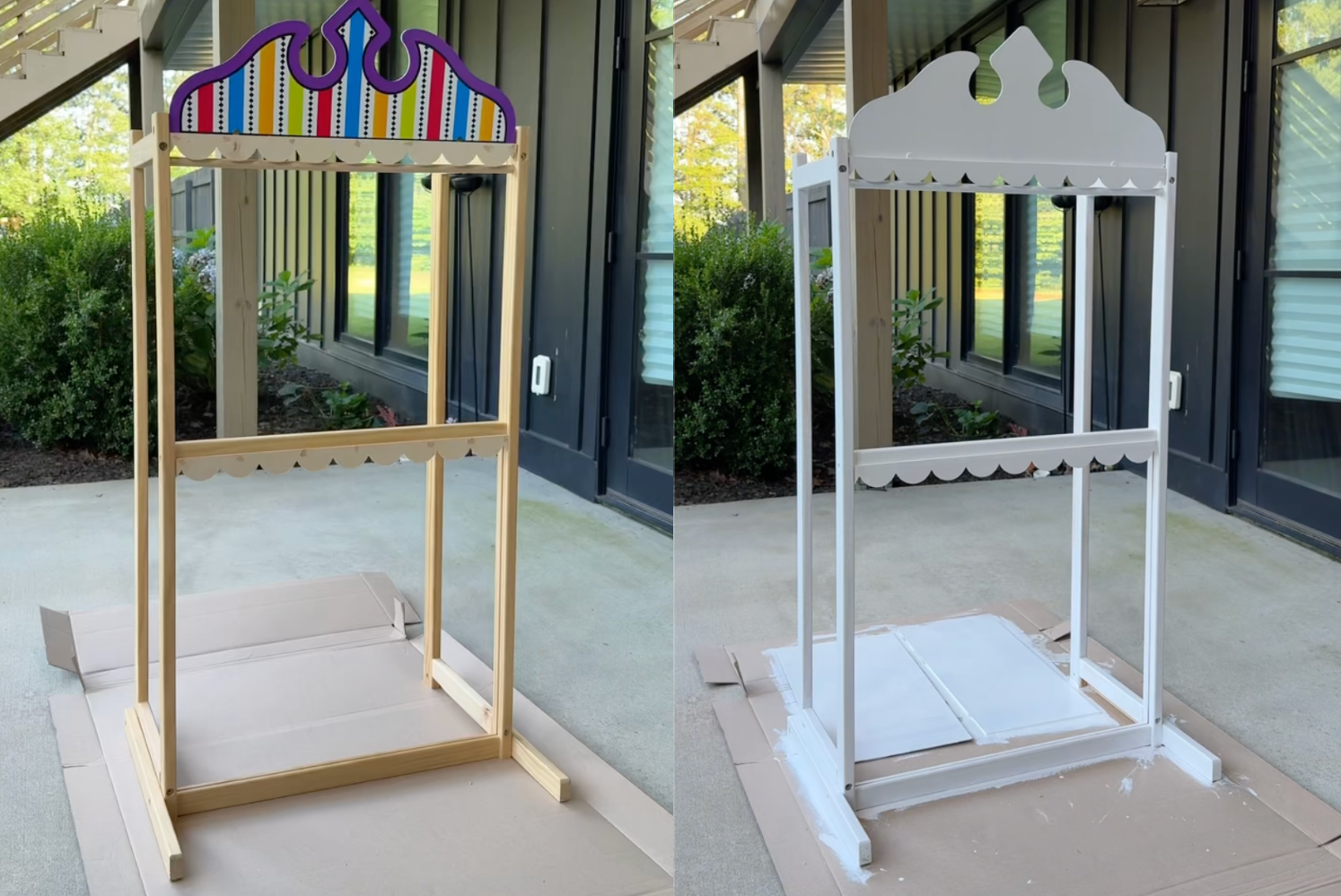 I found the cutest little puppet theater on Facebook Marketplace, but I wanted to give it a refresh. While I love color, I am not into the super bright primary color schemes that kids’ toys often come in. I wanted something a little more whimsical, playful, and girly, so I gave this toy a makeover
